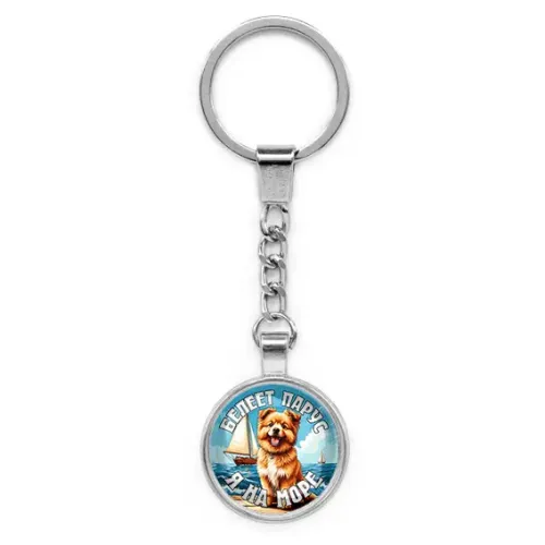 Круглый брелок с цепочкой и изображением. Материал: бижутерный сплав, стекло.