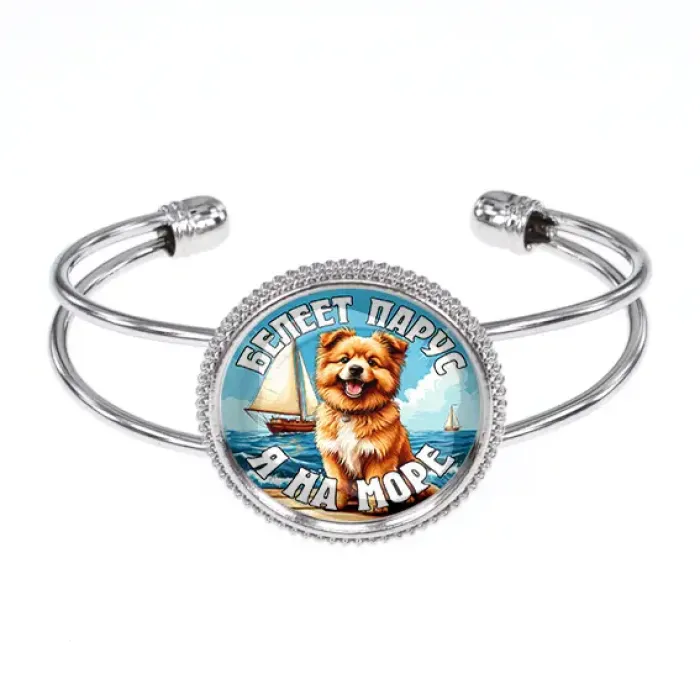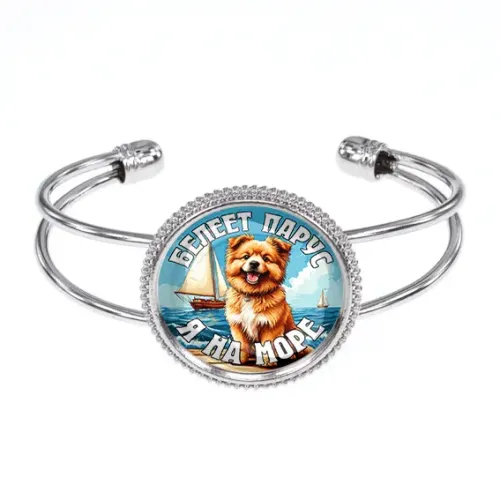 Браслет из бижутерного сплава с серебристым покрытием. Основной элемент — изображение под выпуклой стеклянной линзой диаметром 25 мм.