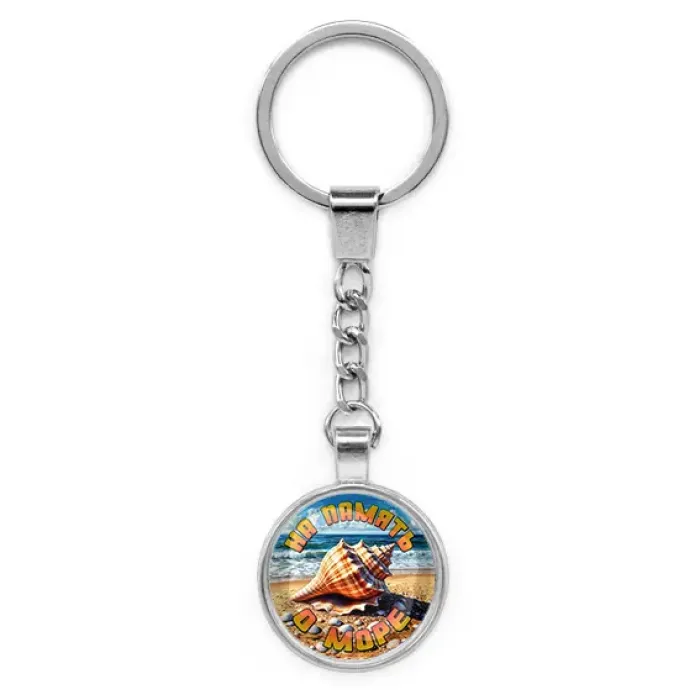 Круглый брелок, цвет серебро, с цепочкой, На память о море C0309022