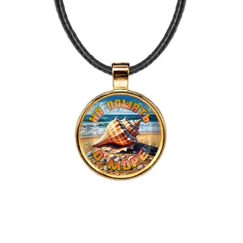 Сувенирный кулон с морской тематикой из бижутерного сплава с золотым покрытием и стеклянной линзой.