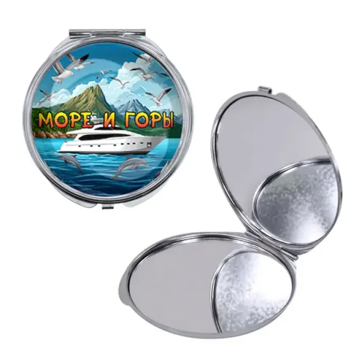 Круглое складное зеркало, цвет серебро, Море и горы C0310016