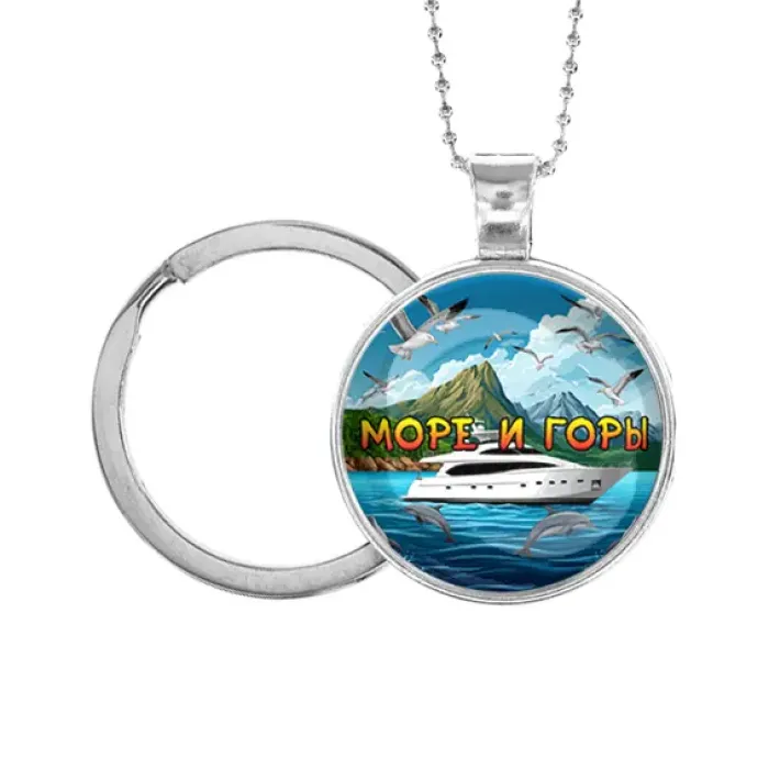 Кулон-брелок, цвет серебро, с цепочкой и кольцом, Море и горы C0310054