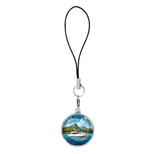 Подвеска для телефона, цвет серебро, со шнурком, Море и горы C0310060