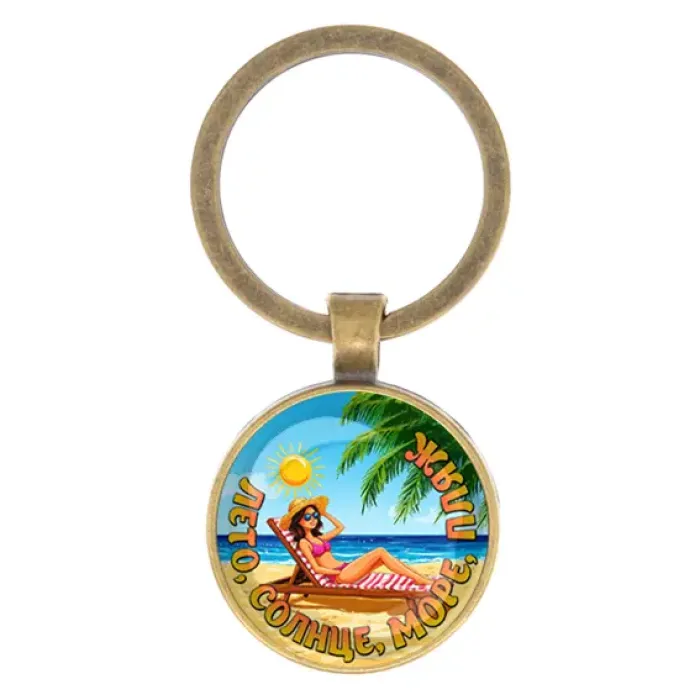 Круглый брелок, цвет бронза, Лето, солнце, море, пляж C0311017