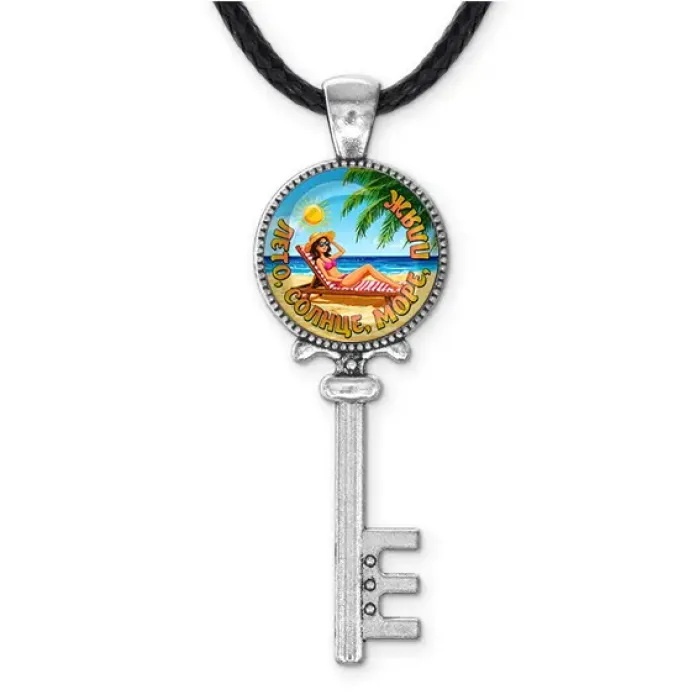 Кулон в форме ключа из бижутерного сплава на шнурке. Дизайн с тематикой лета, солнца и моря.