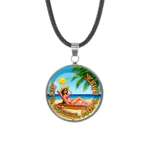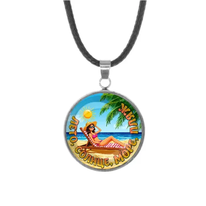 Кулон, нержавеющая сталь, со шнурком, Лето, солнце, море, пляж C0311062