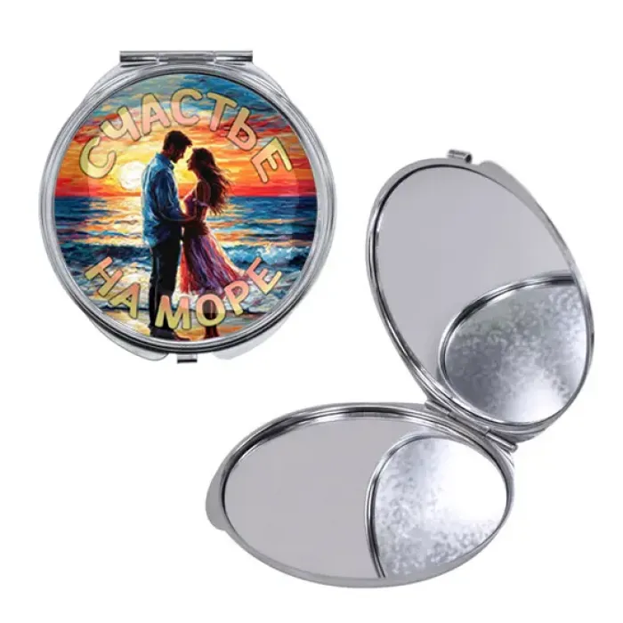 Круглое складное зеркало, цвет серебро, Счастье на море C0312016