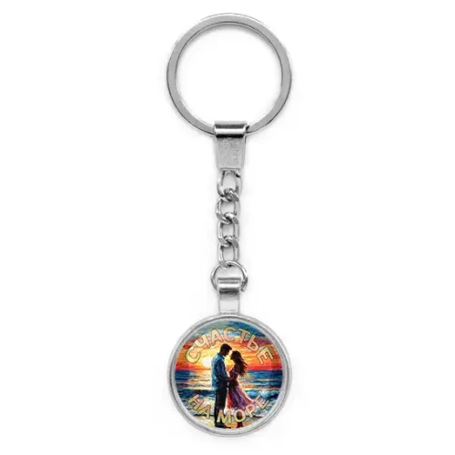 Круглый брелок, цвет серебро, с цепочкой, Счастье на море C0312022