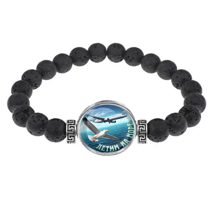 Стрейч-браслет из натуральной лавы с изображением под выпуклой стеклянной линзой.
