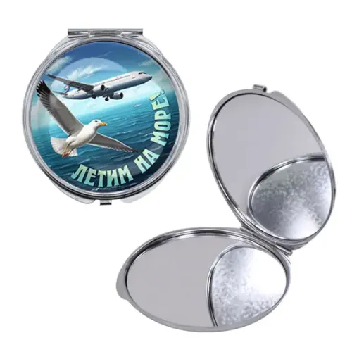 Круглое складное зеркало, цвет серебро, Летим на море C0313016