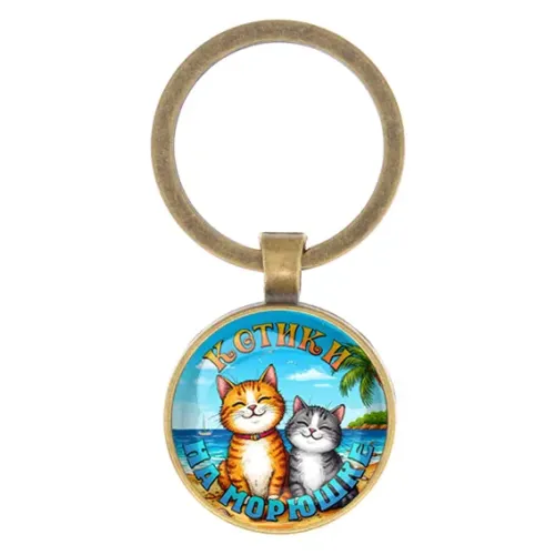Круглый брелок, цвет бронза, Котики на морюшке C0314017