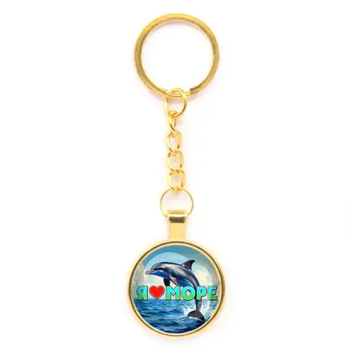 Круглый брелок, цвет золото, с цепочкой, Я люблю море C0315020