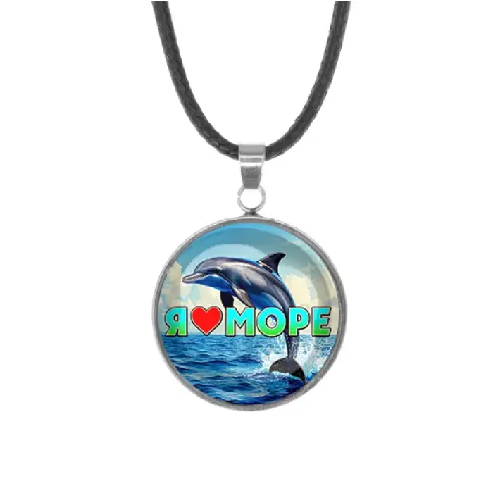 Кулон из нержавеющей стали с изображением на морскую тематику. Изображение защищено выпуклой стеклянной линзой.