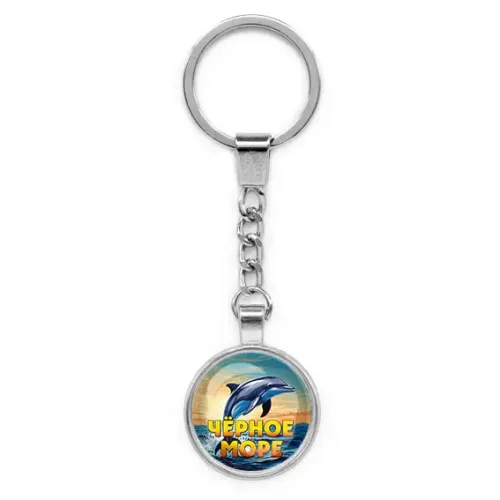 Круглый брелок, цвет серебро, с цепочкой, Черное море C0316022
