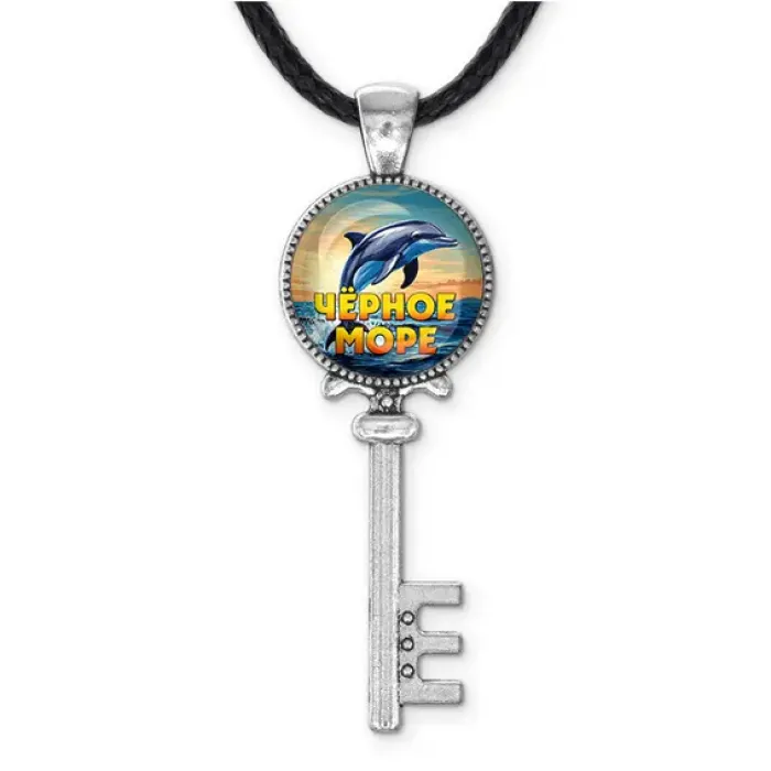 Кулон ключ, цвет серебро, со шнурком, Черное море C0316043