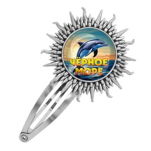 Металлическая заколка для волос серебристого цвета с декоративным элементом «Черное море».
