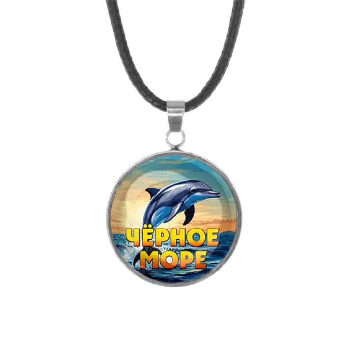 Кулон из нержавеющей стали со шнурком в комплекте. Дизайн с изображением Черного моря под выпуклой стеклянной линзой.