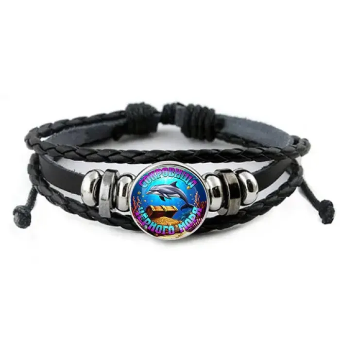 Браслет из искусственной кожи с декоративным элементом на тему Черного моря.