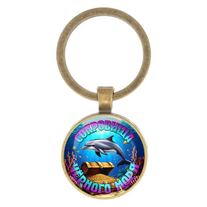 Брелок из коллекции «Сокровища Чёрного моря» круглой формы, выполнен из бижутерного сплава с бронзовым покрытием и стеклянной линзой.