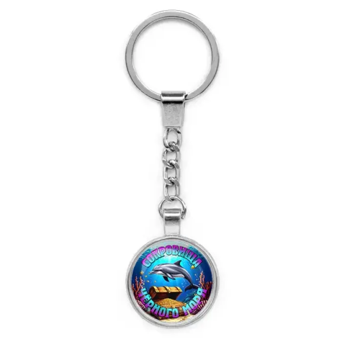 Брелок из бижутерного сплава с серебристым покрытием и стеклянной линзой, входящий в коллекцию «Сокровища Чёрного моря».
