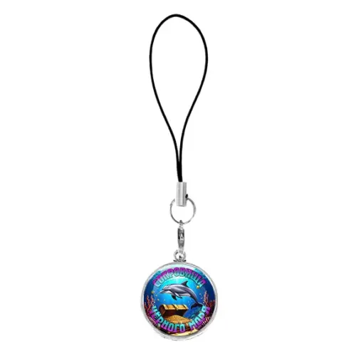 Подвеска для телефона из бижутерного сплава под серебро с изображением под выпуклой стеклянной линзой.