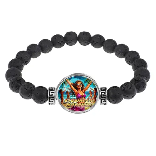 Стрейч-браслет из натуральной лавы с изображением под выпуклой стеклянной линзой.