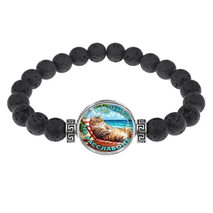 Стрейч-браслет из натуральной лавы с изображением под выпуклой стеклянной линзой.
