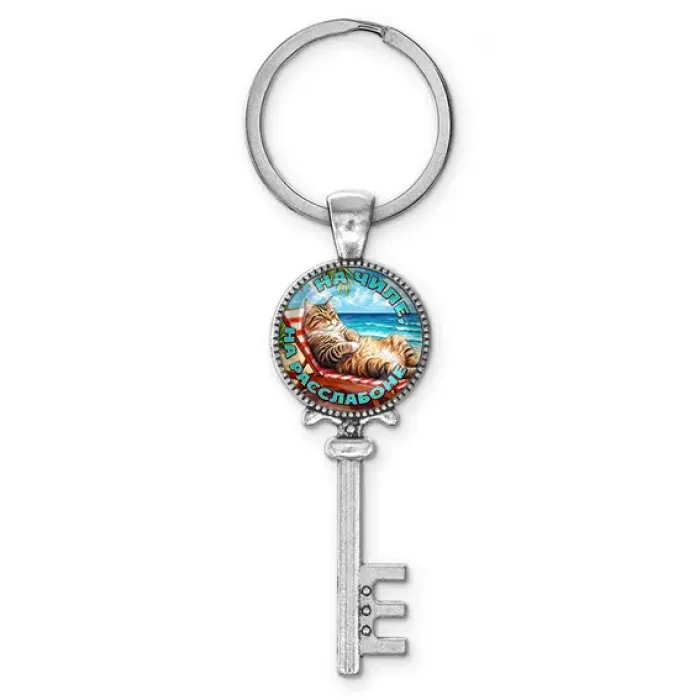 Брелок ключ, цвет серебро, с кольцом для ключей, На чиле на расслабоне C0320044