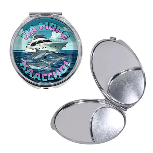 Круглое складное зеркало, цвет серебро, На море классно C0321016