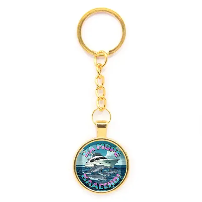 Круглый брелок, цвет золото, с цепочкой, На море классно C0321020