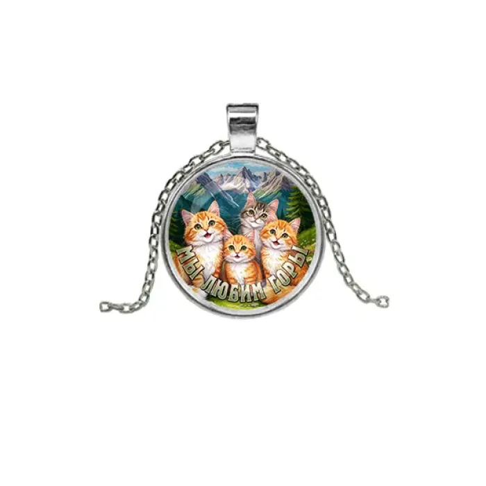 Кулон с цепочкой в серебристом цвете с изображением горной тематики.