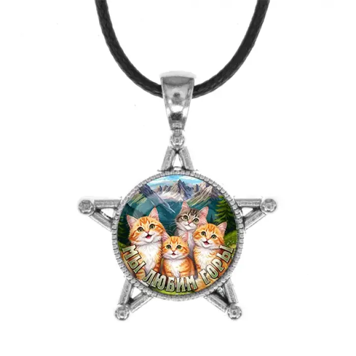 Кулон в виде звезды с изображением гор. Материал: бижутерный сплав под серебро и стекло.