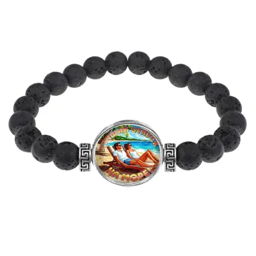 Стрейч-браслет из натуральной лавы с изображением под выпуклой стеклянной линзой.