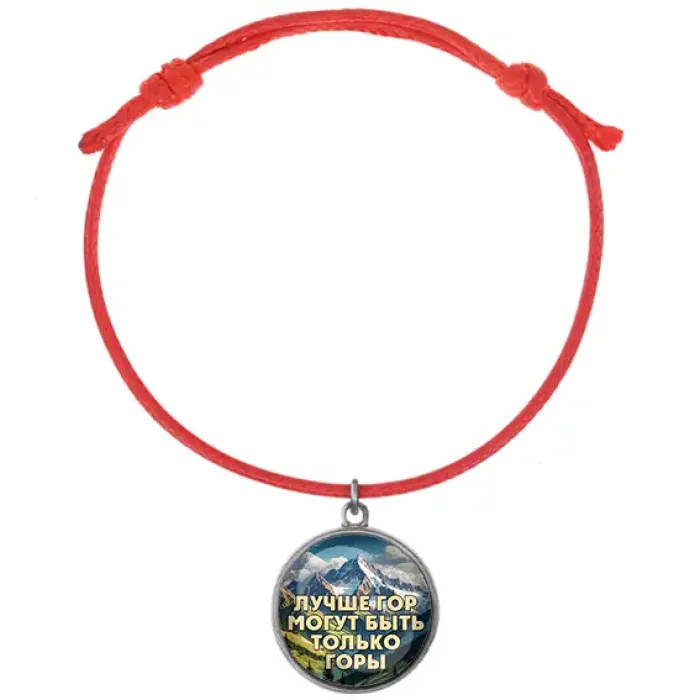Браслет из шнура с металлической подвеской. Подвеска имеет полиграфическую вставку под выпуклым стеклом.