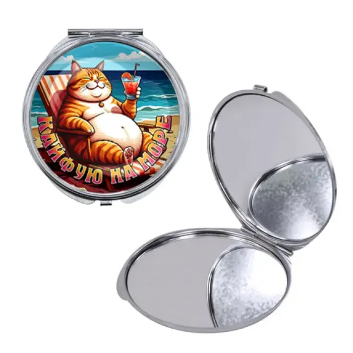 Круглое складное зеркало, цвет серебро, Кайфую на море C0325016