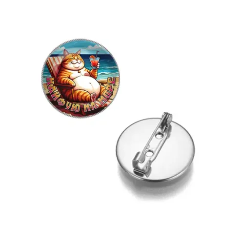 Круглый сувенирный значок из бижутерного сплава с надписью «Кайфую на море».