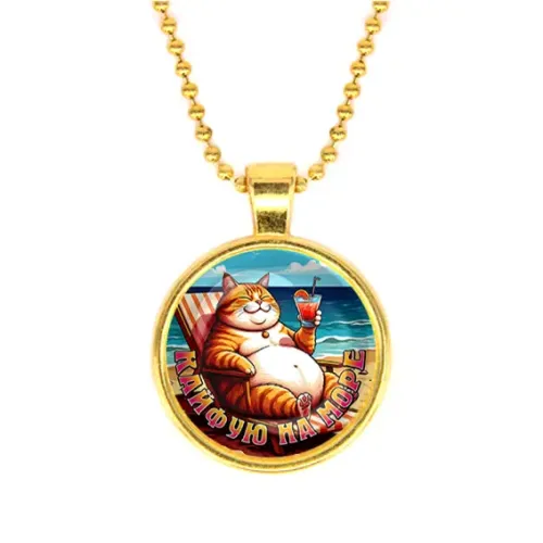 Кулон с цепочкой из бижутерного сплава с золотым покрытием и стеклянной линзой. Дизайн с морской тематикой.