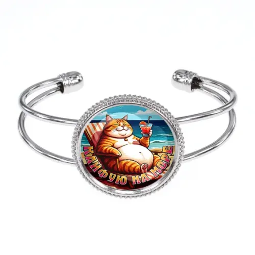 Браслет из бижутерного сплава с покрытием под серебро. Украшен изображением под выпуклой стеклянной линзой.