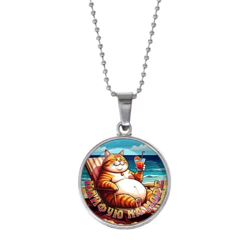 Кулон с цепочкой из бижутерного сплава в серебряном цвете с изображением под стеклянной линзой.