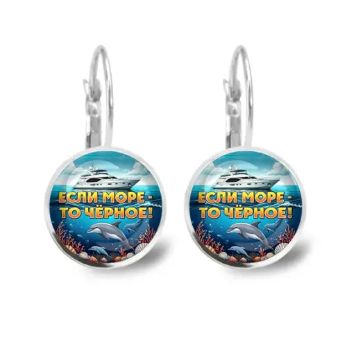 Серьги металлические, Если море, то Черное C0326038