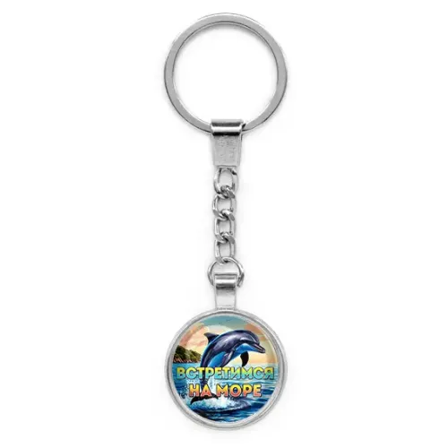 Круглый брелок, цвет серебро, с цепочкой, Встретимся на море C0327022