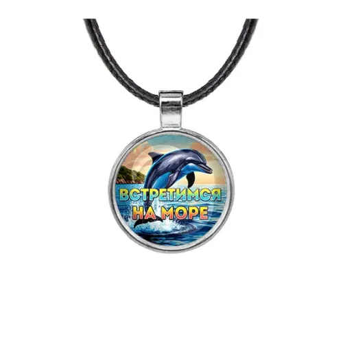 Кулон «Встретимся на море» из бижутерного сплава со стеклянной линзой и шнурком.
