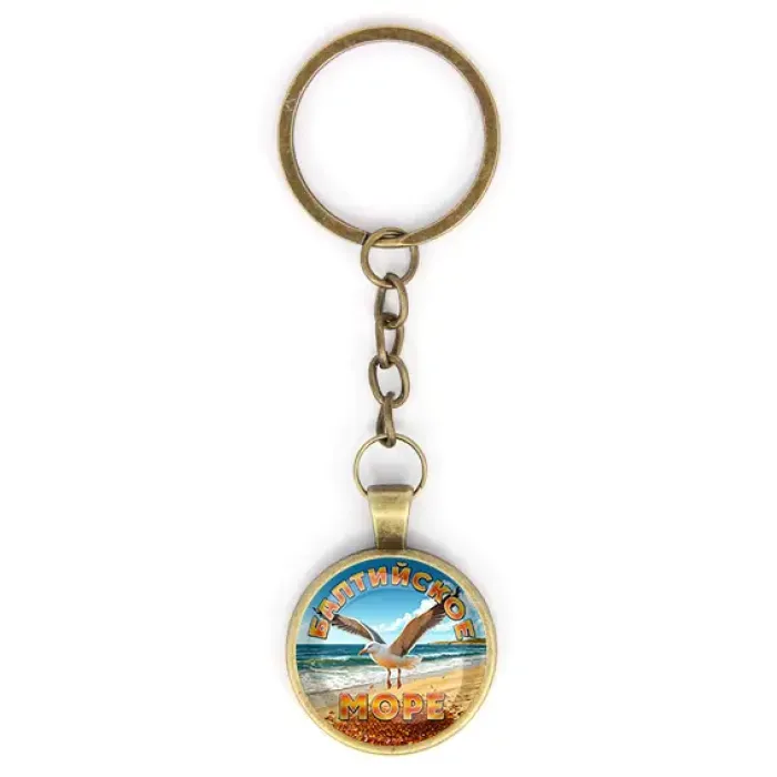 Брелок круглой формы в цвете бронза с изображением Балтийского моря.