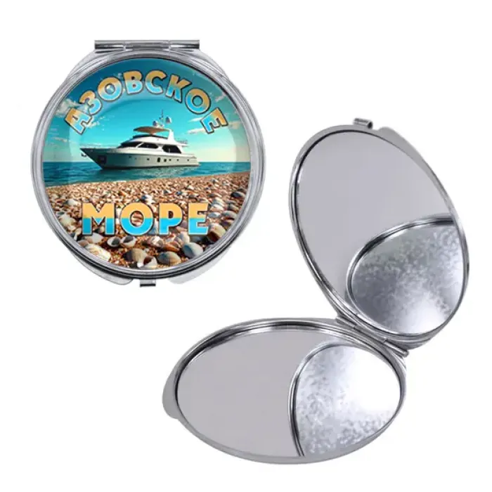 Складное зеркало для косметического набора из металла и стекла с полноцветным принтом Азовского моря.
