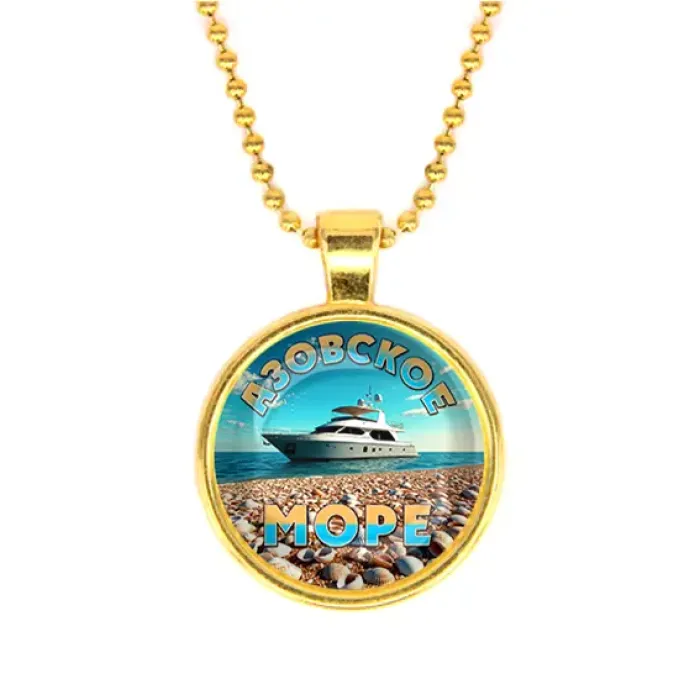 Кулон «Азовское море» — украшение из бижутерного сплава с золотым покрытием и стеклянным элементом под выпуклой линзой.