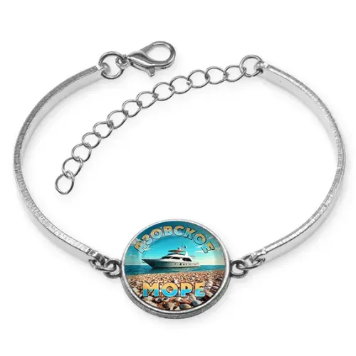 Браслет из бижутерного сплава с изображением Азовского моря и стеклянной линзой.