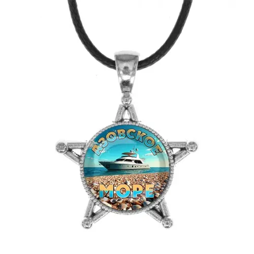 Кулон в форме звезды из бижутерного сплава с изображением моря под защитным стеклом.