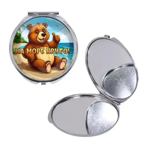 Круглое складное зеркало, цвет серебро, На море круто C0330016