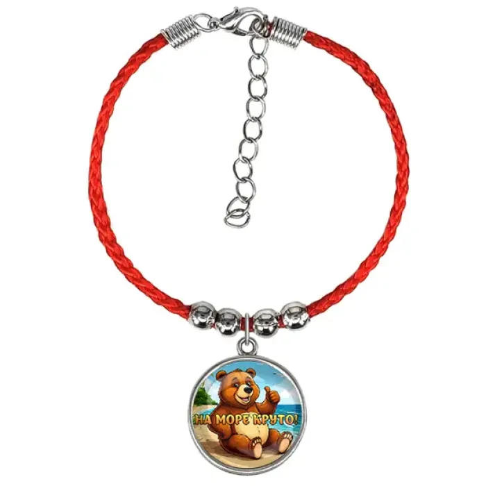 Браслет из шнура с декоративным элементом под стеклом. Сувенирный аксессуар с регулируемым диаметром.
