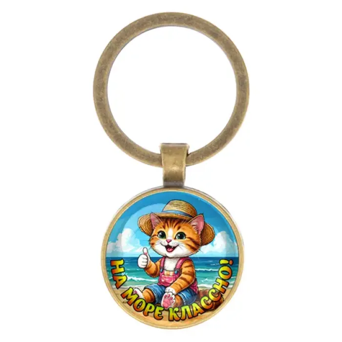 Брелок круглой формы в бронзовом цвете с изображением на морскую тематику.